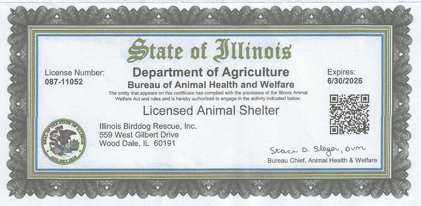 Illinois Birddog Rescue wants to make sure all of our adoptable dogs stay healthy throughout flea and tick season. We welcome donations of Frontline, Heartguard, or any similar product. Email Lisa if you would like to help.