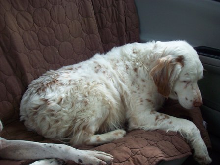 Poor Sweet Duckie (sleeping setter) is now in hospice care. She came to us in February of 2009 after her back leg had been amputated. Upon arrival she was diagnosed with Heartworm disease, Lyme disease, Ehrlichia and Rocky Mountain spotted fever. She also has mammary cancer. After 11 months in foster care and with ongoing treatment, she is heartworm and Lyme negative but she still has chronic Ehrlichia and RMSF. She was too anemic to do any surgery until recently and during her spay it was discovered she needed her spleen removed because of a tumor. This is so sad and the doctor has given her 10 months to live. We are hopeful she will outlive his prognosis. Duckie's story