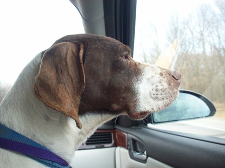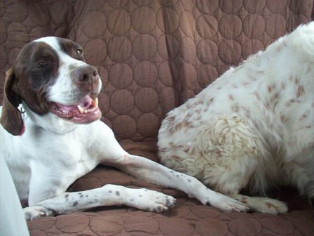 Also, in January, I was contacted about a Pointer in need in Tennessee. Starbuck was part of a large Pointer/Breeder program and wasn't measuring up in competition. The breeder's kennels had also blown down in a December tornado. Starbuck flew to town mid-January and was also a bag of bones. He is being fed three meals a day and is starting to adjust to indoor living. He's also starting to show his silly Pointer personality. Starbuck's Recovery Page