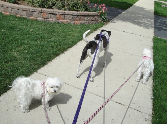 The Mendota Big Dog Walker is the ideal way to humanely take your pet for an outing. For years, Illinois Birddog Rescue has been providing the 6 foot leash with every adoption. Now we have them available in 10 foot lengths for even easier walking or running with your pet. In the modified half hitch position, your dog will not strain with anything around their neck. As a rescue and leader in dog training, we feel the Dog Walker is a kinder method of walking your dog rather than the cruel pinch or choker collar methods. Also because it is not attached to the collar, there is no danger of the collar slipping over your dog�s head.